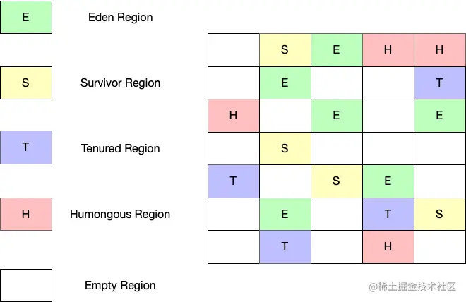 这种将内存分为一个个Region的内存布局更加有利于内存的回收,垃圾回收集可以采用分治的思想去管理一小块的内存(处理内存的分配与回收),避免了之前版本垃圾回收集在处理Old Generation时只能处理整个Old Generation困局(整个Old Generation一起处理通常非常耗时的,而且这个过程中避免不了STW)。