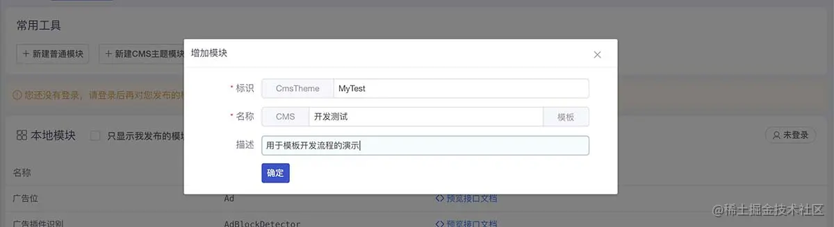 如果您需要手动创建模板主题模块,请参照 CMS开发演示模板