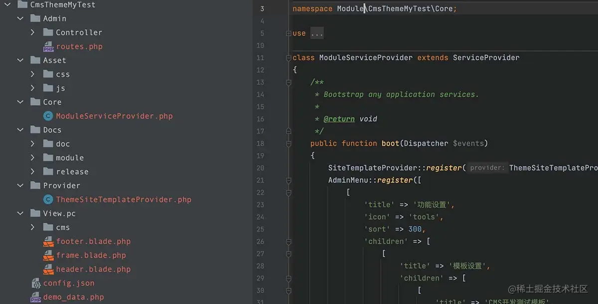 │ └── ModuleServiceProvider.php → 模块核心注册器