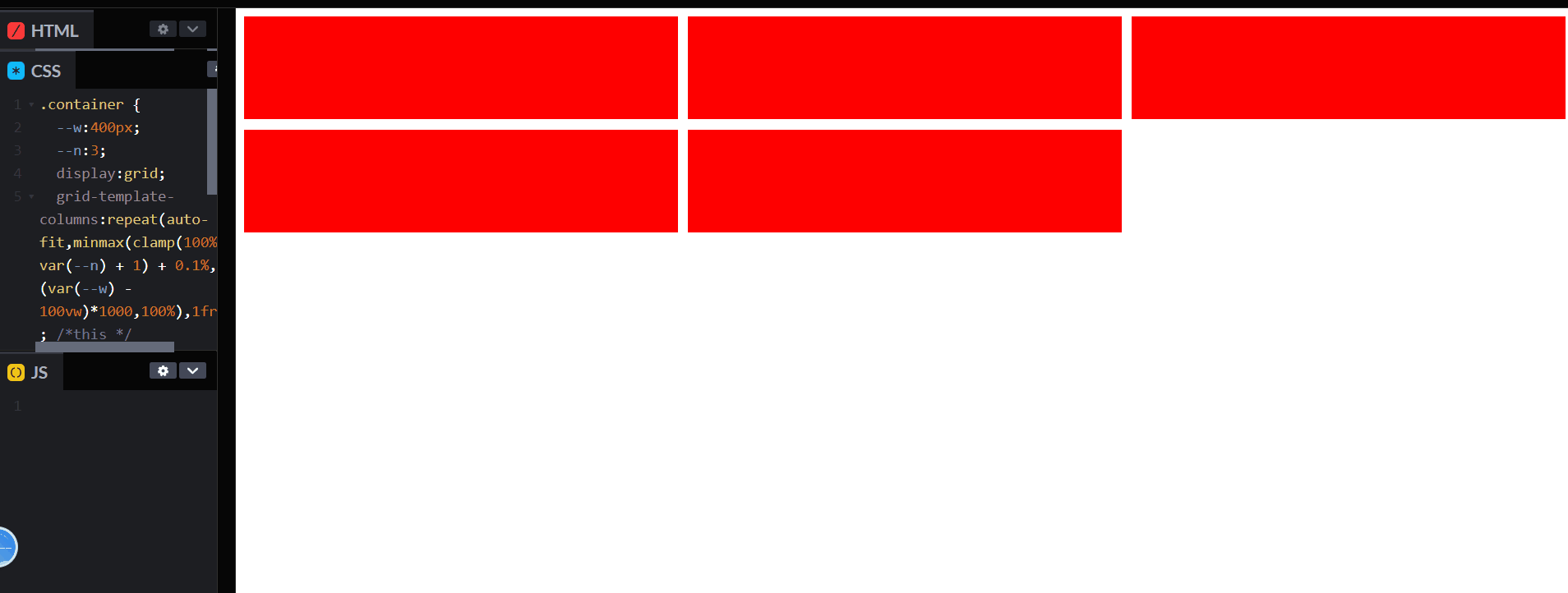 grid-template-columns:repeat(auto-fit,minmax(max(var(--w), 100%/(var(--n) + 1) + 0.1%),1fr)); /*this */