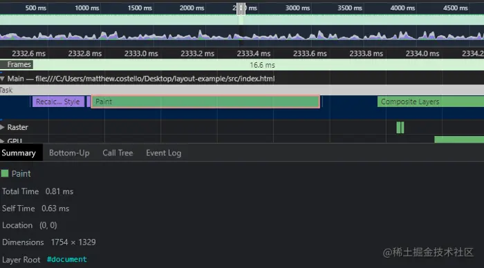 - Update Layer Tree 是浏览器管理所有层状态的事件 —— 如果这里耗时很长,那表示有太多的层或过于臃肿的DOM元素