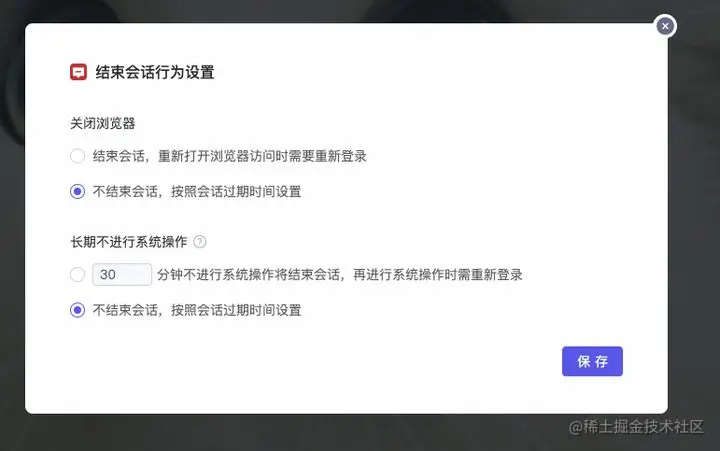 站在系统管理员的角度,我们很容易想到去管理用户的会话行为。一般来说,可以通过设置 Token 过期时间(被动过期)、设置结束会话的行为、手动结束用户会话(主动下线)这三种方式来管理用户会话。而若对管理员开放自定义会话管理的功能,在提升系统管理员的运维体验上更进一步——让管理员真正“有能力管理”系统发放出去的 Token。