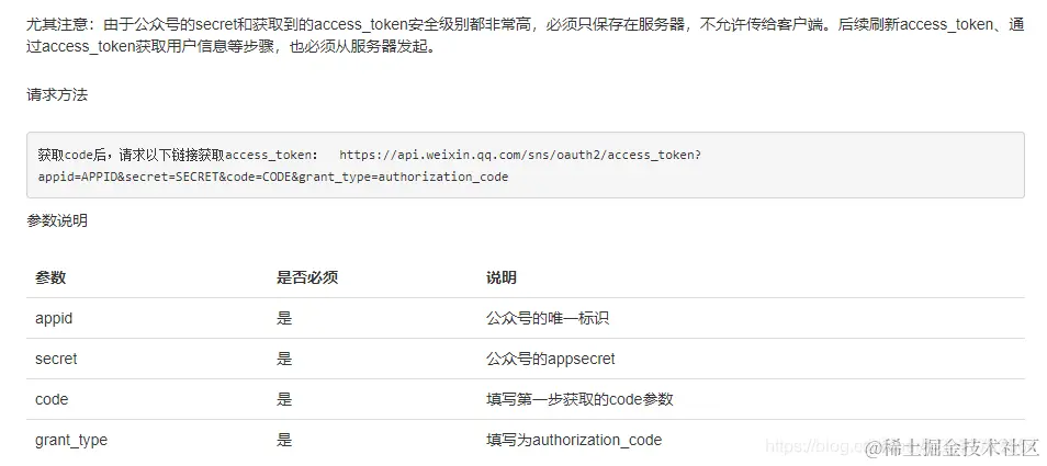 appid介绍过了,code可以从回调请求的参数中获取,secret是公众号的密钥开发时保存在后端。