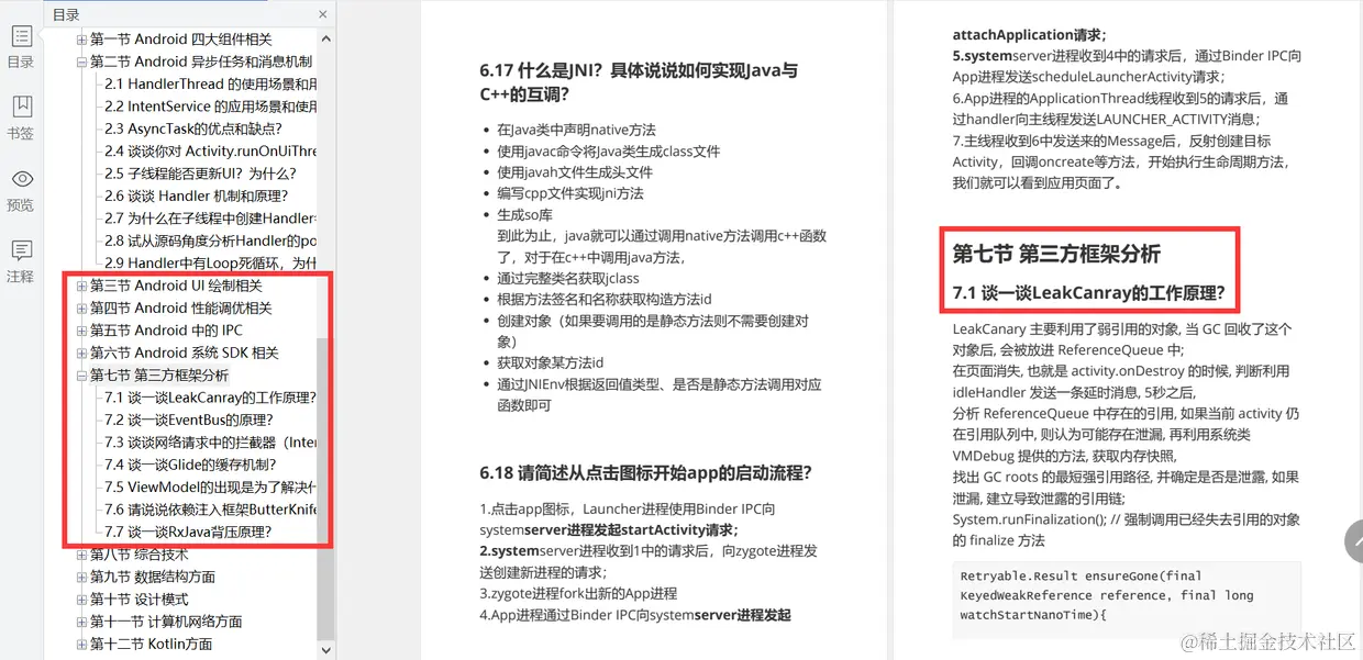 由于篇幅有限,资料内容过多,只展示目录和部分截图,需要完整版《2022中高级 Android 面试必知百题》(面试题+答案解析)请点击这里免费领取!