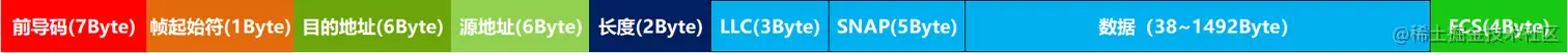 这里需要注意:因为802.3帧的LLC和SNAP字段占用的是Data字段的8个字节,因此实际上层数据承载最大就变成了1492字节。