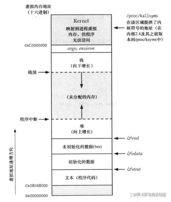 虚拟地址空间0~3G用于用户层 虚拟地址空间3~4G用于内核层