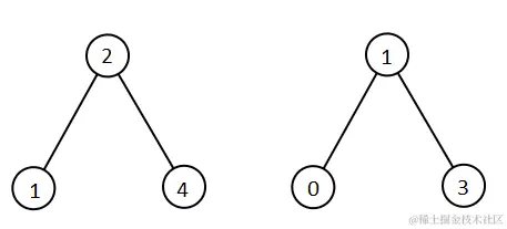 输入: root1 = [2,1,4], root2 = [1,0,3]