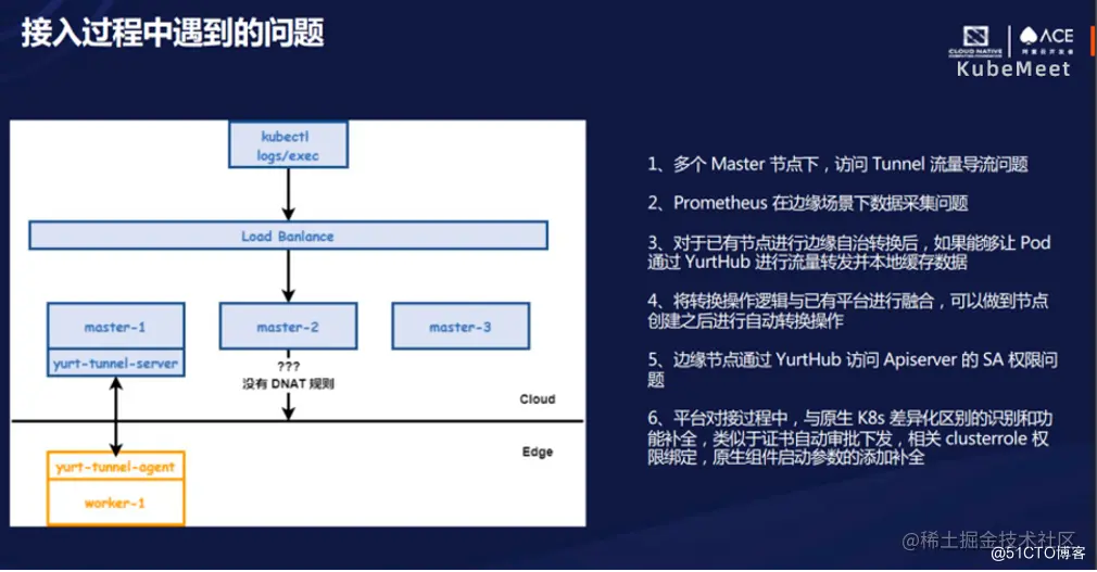 我们做改造的部分主要是针对用户集群这一块,跟 OpenYurt 做结合。在改造落地的过程中也出现了很多问题。