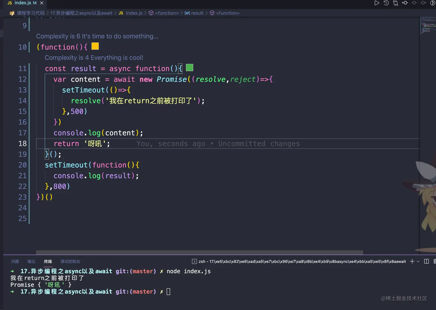 await后打印的content中有内容了我在return之前被打印了(await之后是等待了500毫秒之后才往下面走😱)