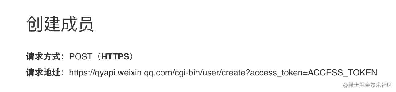 有了token之后,我们就可以通过http请求来调用各种api,获取数据。举一个例子,创建成员的api,如下,我们只要使用http工具调用即可。