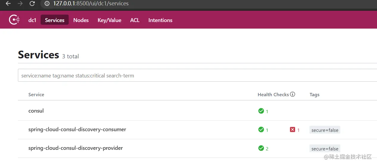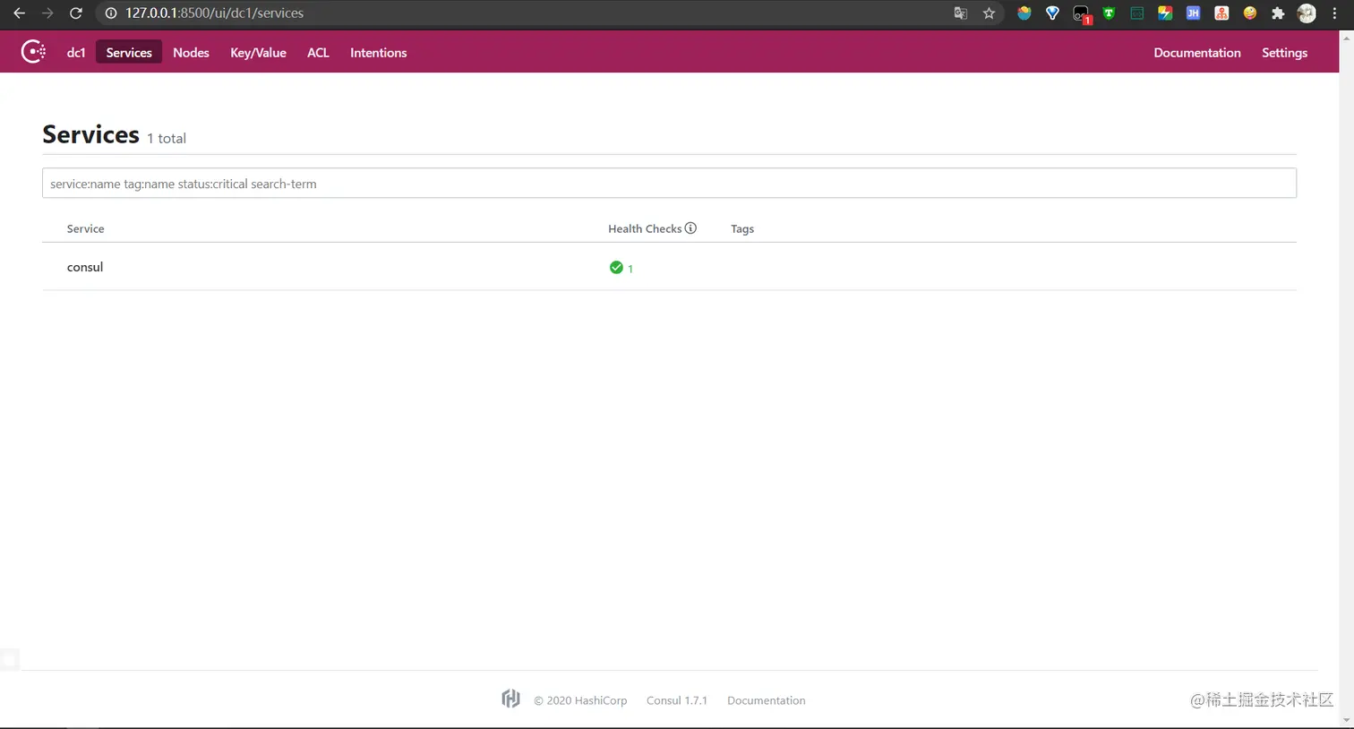 然后我们访问地址:http://127.0.0.1:8500/
