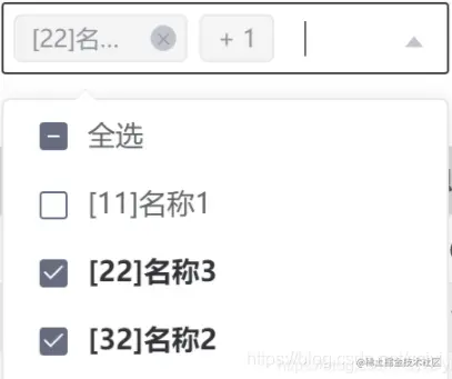 输入2后,模糊查询后,点击全选,选中的是当前筛选后的全部,并不是实际所有下拉选项的全部