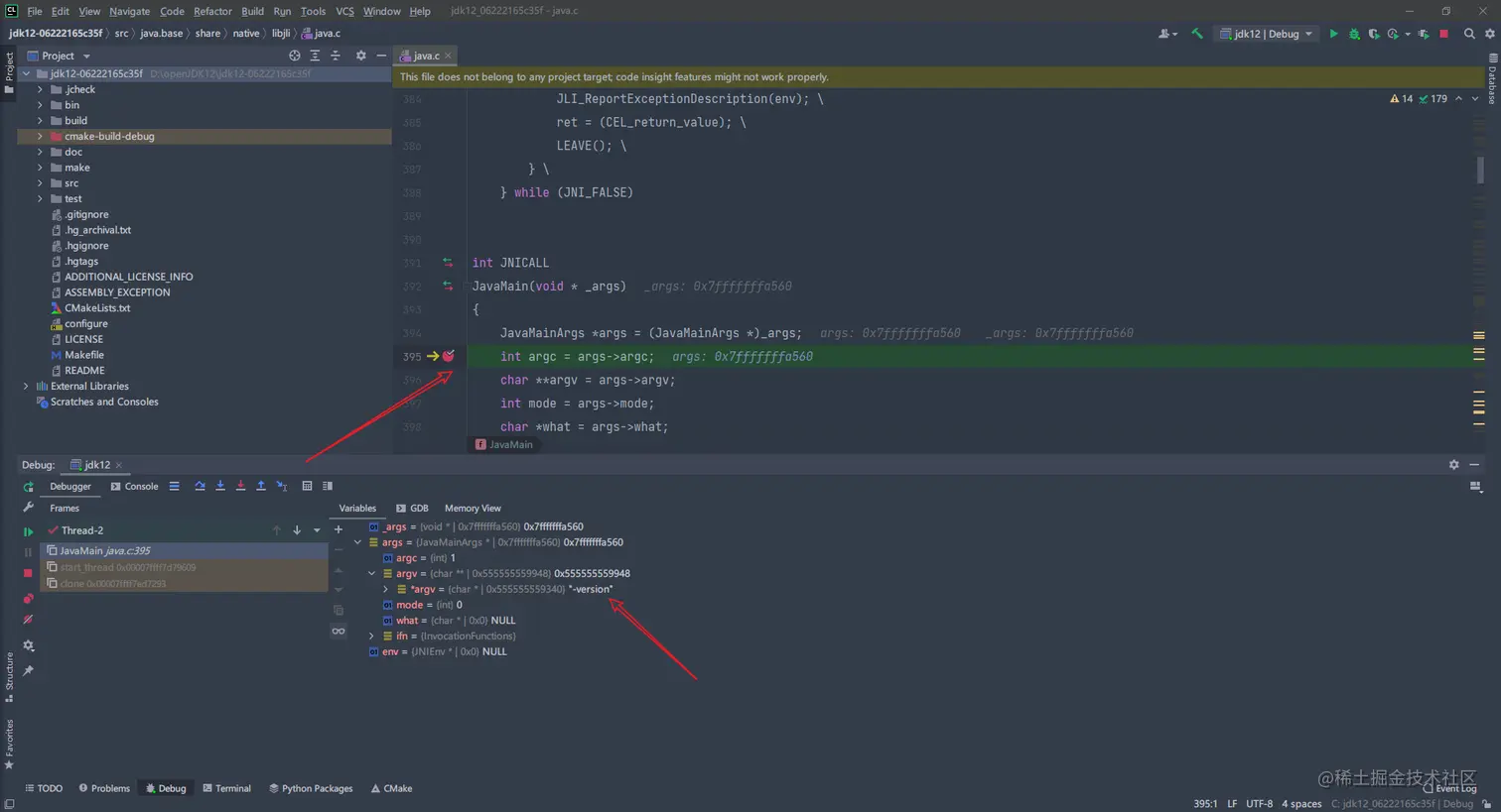 找到java.c文件,打个断点,直接Debug启动(开始你的表演):