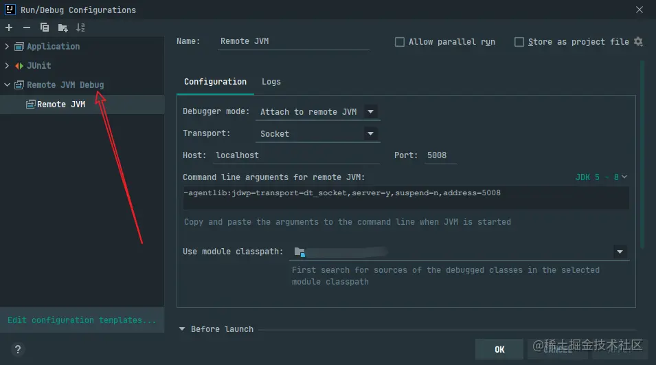 - 添加Configuration,选择Remote JVM Debug即可: