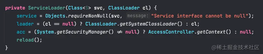 该块代码也没啥内容,声明返回了 ServiceLoader 对象,这个对象有什么文章?我们可以查看这个类声明