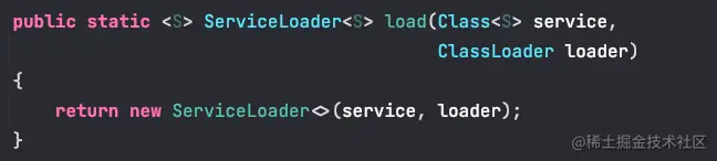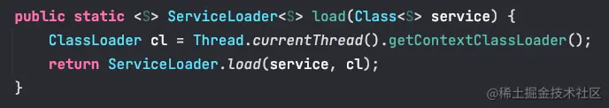其实我们上面使用SPI的时候可以看到一个关键的类那就是ServiceLoader ,该类位于 java.util包下,我们直接点进 load() 方法查看如何调用