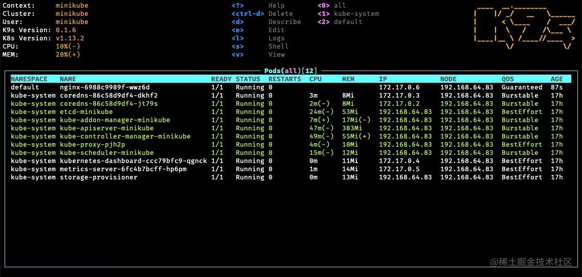 K9s 提供了一个终端UI来与Kubernetes集群交互。这个项目的目的是让您的应用程序更容易导航、观察和管理。K9s不断地监视Kubernetes的变化,并提供后续命令来与观察到的资源交互。