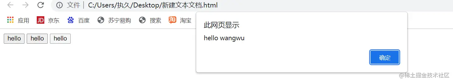 <input type="button" value="hello" onclick="alert('hello zhangsan');