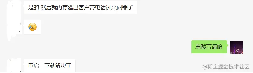 上个月有位朋友加微信求助,说他的程序跑着跑着就内存爆掉了,寻求如何解决,截图如下: