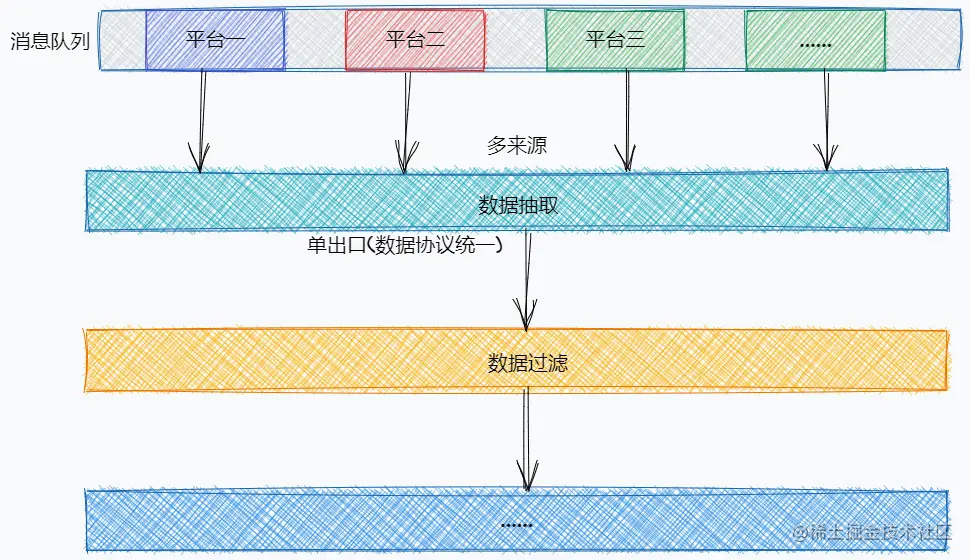 在消息队列中,有各种不同平台的素材数据,但是每个平台的素材数据可能都稍有不同,我们需要将这些数据处理一下,最后输出统一的数据格式供下游进行计算处理;同时也要有良好的拓展性,以供我们后续拓展素材来源。