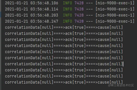 System.out.println("confirm...correlationData["+correlationData+"]==>ack["+ack+"]==>cause["+cause+"]");