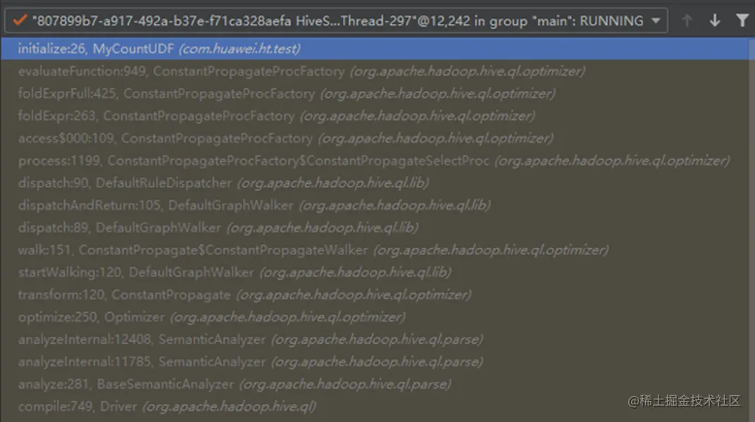 Operator真正执行时,由ExprNodeGenericFuncEvaluator. _evaluate处理每行数据,计算UDF结果值。