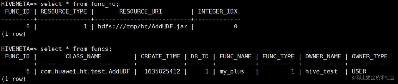UDF添加后记录在元数据表FUNCS、FUNC_RU表中