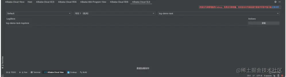 点击Tools-> Alibaba Cloud -> Alibaba Cloud View -> Alibaba Cloud SLS