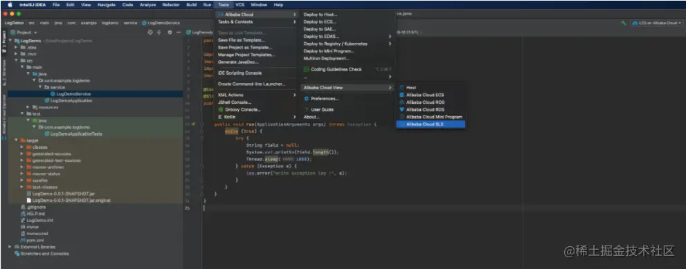 下面我们就来看一个常见的java服务异常排查的场景,来看看Alibaba Cloud Toolkit插件中SLS的功能到底有多方便。