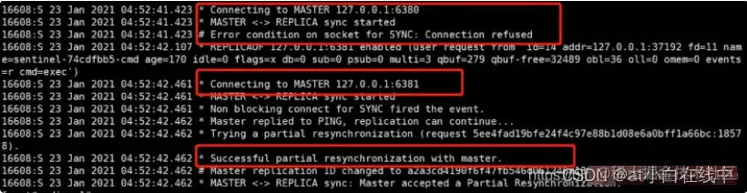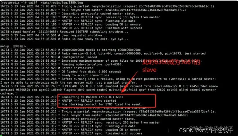 此时查看6381和6382的日志文件,在6382的日志文件中发现了如下内容,说明此时已经将6381切换为主节点。