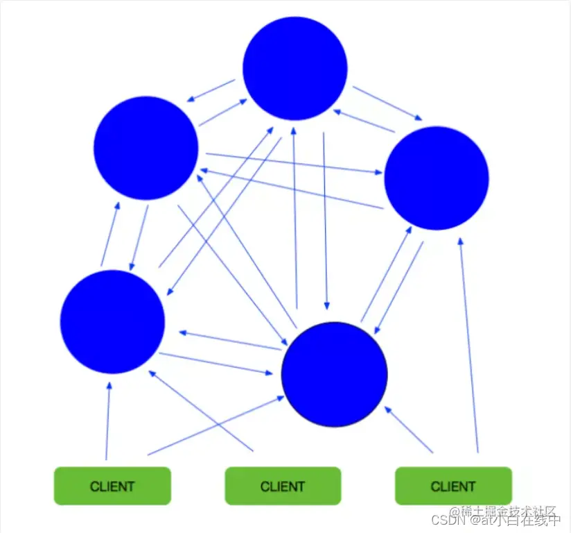 - 集群是一个整体,客户端与redis节点直连,不需要中间proxy层.客户端不需要连接集群所有节点,连接集群中任何一个可用节点即可。