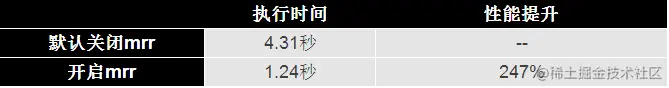 最后来对比一下关闭和开启mrr特性后上述SQL的执行时间: