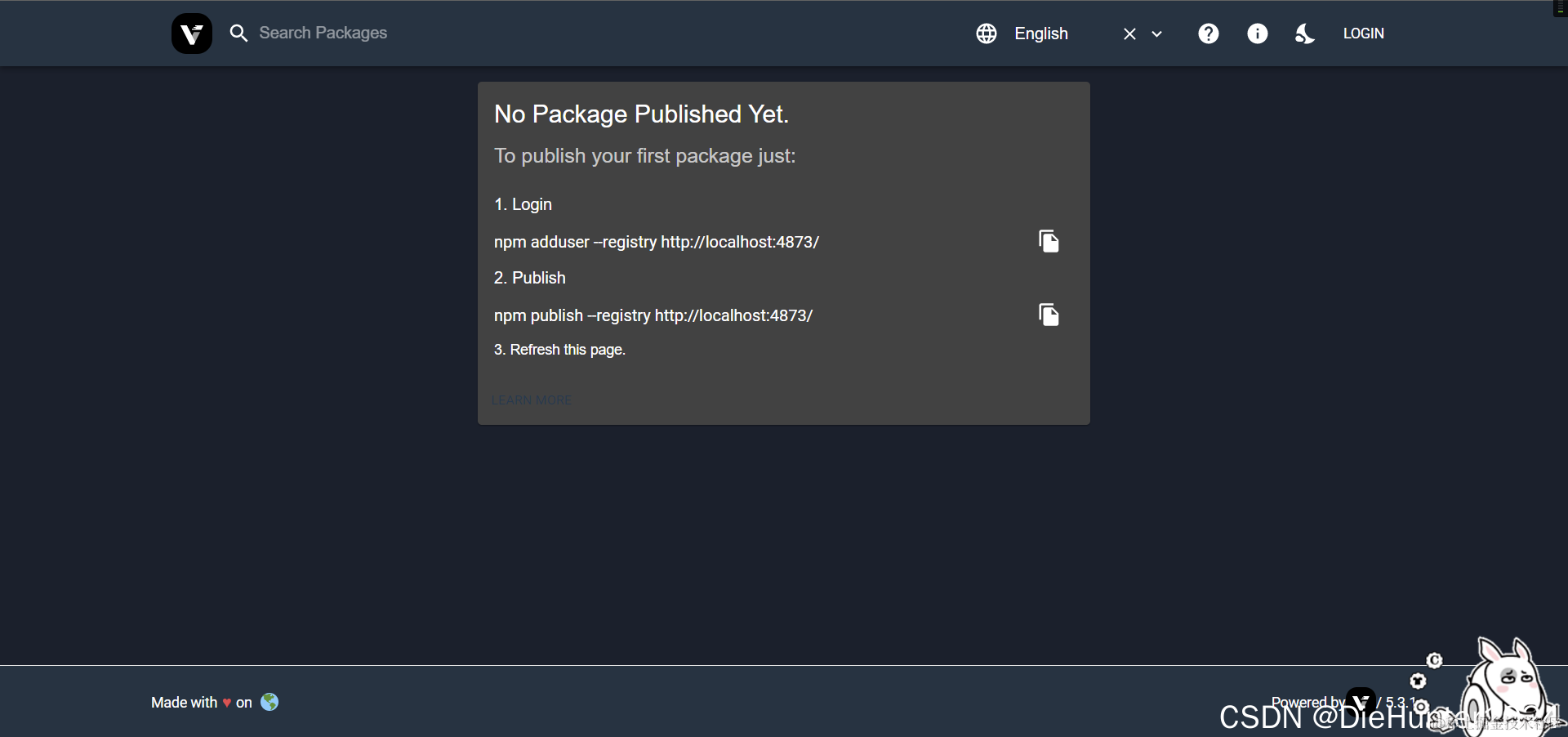 在浏览器打开http://localhost:4873/显示以下页面就可以进行下一步了