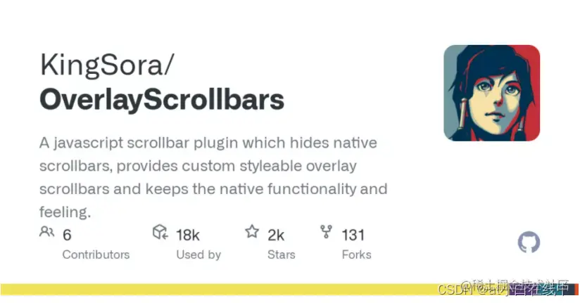 Overlay Scrollbars 与 SimpleBar 很相似,但是它提供了对 HTML body 元素的支持。这意味着除了跨浏览器支持和移动端支持等特性,还可以把它作为网站的主滚动条来使用。