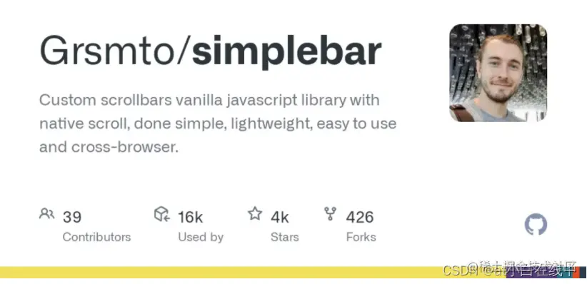 使用原生滚动行为的自定义滚动条 JavaScript 库:操作简单、轻量、易用、跨浏览器。- Grsmto/simplebar