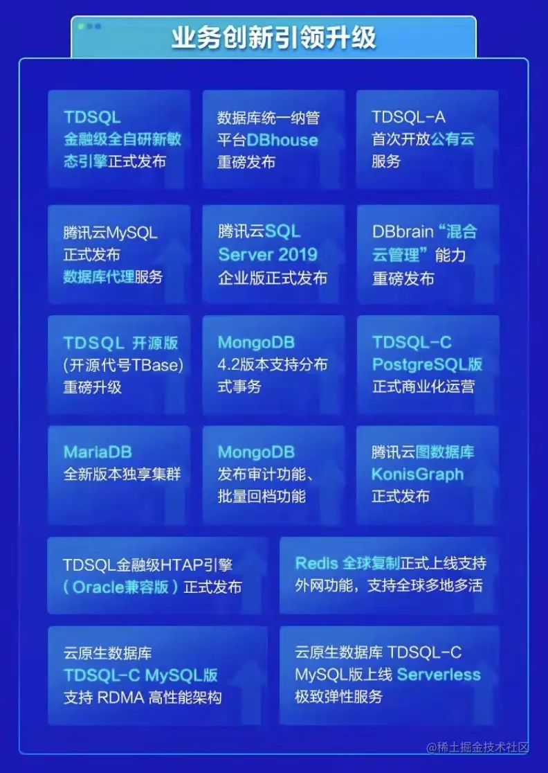 - 2021 全球分布式云大会:StarDB 获 “年度最佳国产分布式数据库”,TDSQL 获 “分布式数据库创新技术奖”,MogDB 获 “分布式数据库技术创新奖”。
