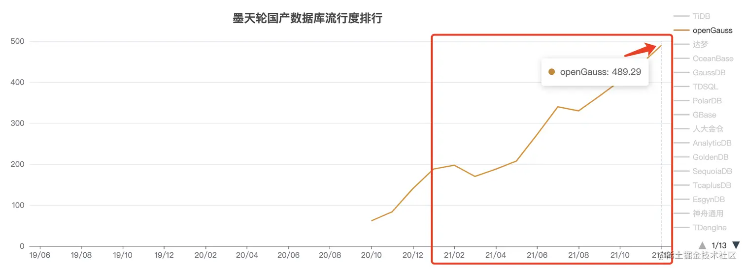 2020 年,openGauss 被评为年度国产数据库,今年一路高歌猛进,全年分数增加 349.44 分,年终月达历史最高分,并取得了第二位的成绩。