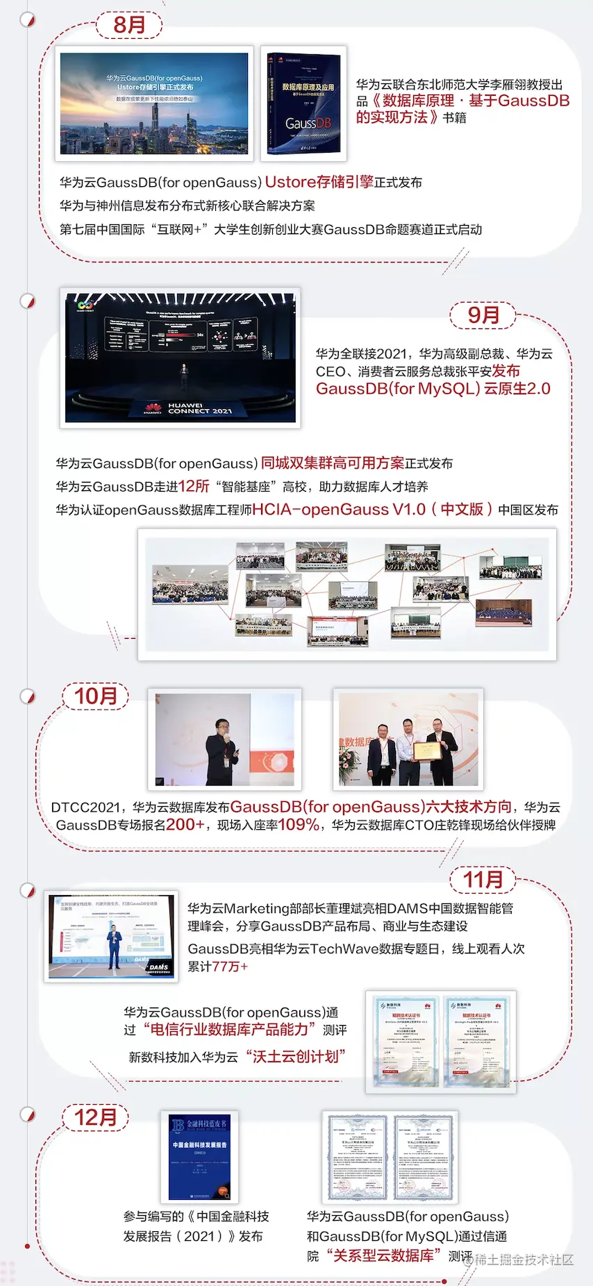 - 2021/09 openGauss 2.1.0 版本正式上线,在高性能、高安全、高可用和智能化方面有重大突破;