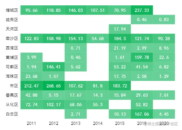 从成交区域来看,南沙区和番禺区各年都有一定土地成交,越秀区和天河区成交土地较少。2020年以来,南沙区土地市场火热,成交面积远高于广州其他地区。