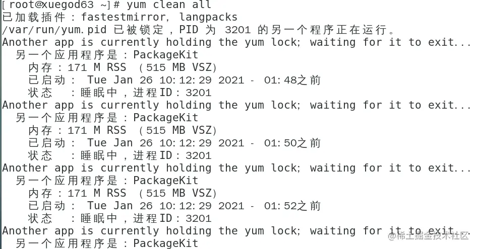 解决办法:rm -rf /var/run/yum.pid