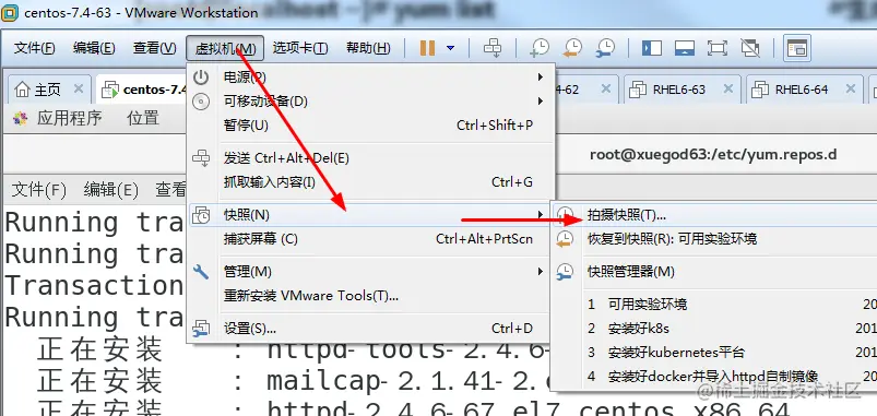 虚拟机----》快照----》拍摄快照----》自定义快照名如“可用实验快照”