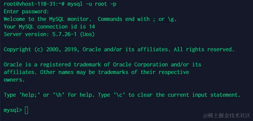 初始化安装的mysql对于root用户是没有密码的,直接输入以下命令即可进入