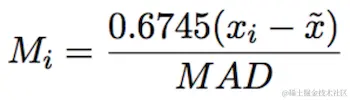 改进的z分数,其中x̃表示中位数,0.6745表示标准正态分布中MAD收敛的第75个四分位数