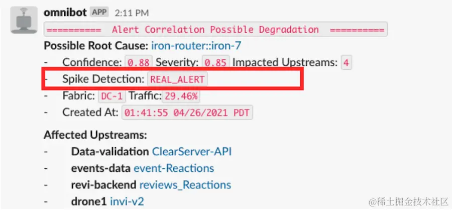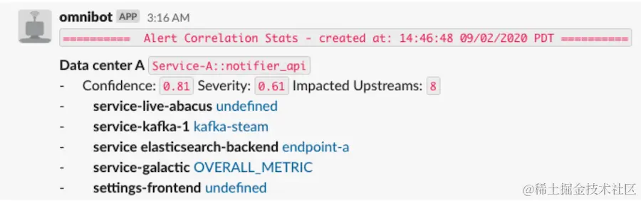 上面的图 2 表示通过 Slack 与服务所有者共享的通知。 该通知包括以下信息: