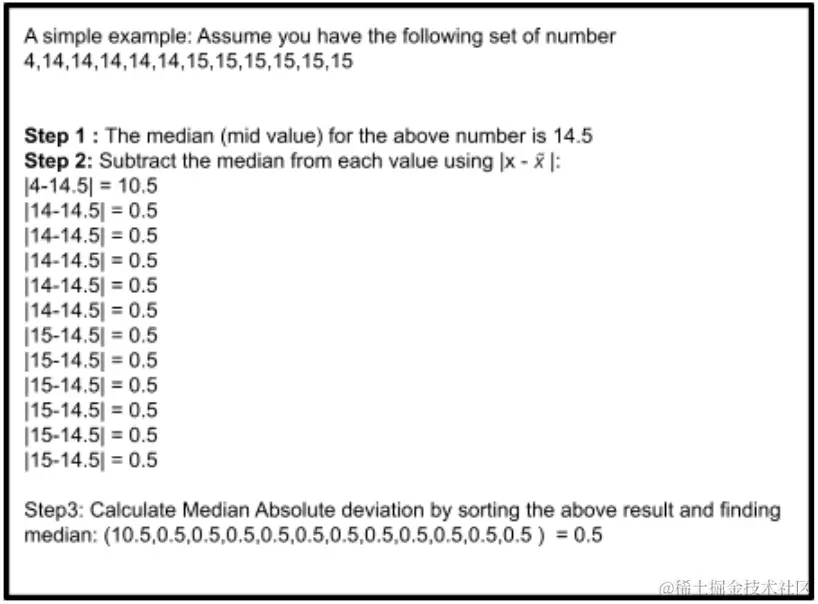 因此,我们需要一种方法来进行异常检测,该方法需要实时、计算成本低且足够稳定,以检测尖峰并确保将误报降至最低。 我们提出了中值估计作为检测异常值的理想解决方案。 中值作为一种强大的估计工具,因为它在存在大的异常值的情况下不会出现偏差。 我们使用称为中值绝对偏差 (MAD) 的中值估计来计算过去 30 分钟警报数据的中值。 一组定量观察的中值绝对偏差主要是分散的度量,即数据集的分散程度。 通过使用 MAD,我们确定了围绕中位数的正偏差的中位数。