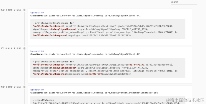 所有日志都可以使用搜索栏进行搜索。 最重要的是,Dr Squirrel提供了两种更有效地查看日志的方法——时间轴视图和独特的异常视图。 如下所示,如果需要更多详细信息,Timeline 视图允许您按时间顺序查看带有类名和预先填充的 ElasticSearch 链接的日志。