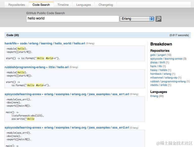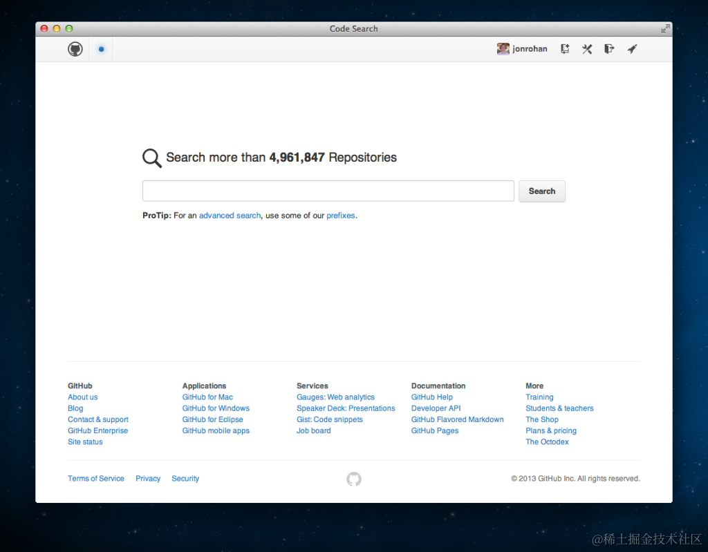 事实上,在 2013 年初,就在 Google 代码搜索即将结束之际,GitHub 推出了由 Elasticsearch 集群支持的全新代码搜索,整合了公共和私有存储库的搜索体验并更新了设计。 搜索索引在发布时涵盖了近 500 万个存储库。