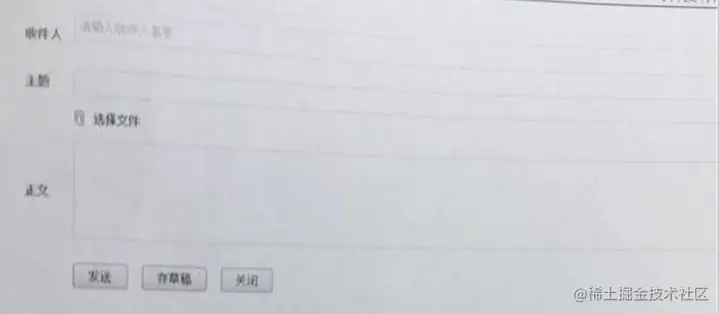 - 输入正确的收件人、主题信息、选择附件、输入正文部分,点击关闭——重新进入新建邮件信息界面,页面信息回归初始化状态