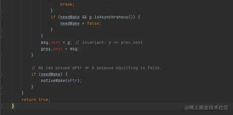 nativeWake()作用是唤醒MessageQueue.next()种的阻塞方法