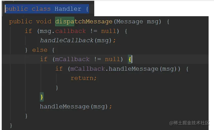 下面是handler分发message的时候,有callback回调的时候,则交给callback处理,这里的callback就是post的时候传入的callback